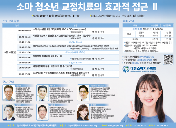 소아청소년교정교육연구위원회 주최의 " 소아청소년 교정치료의 효과적 접근 II" 학술행사 안내